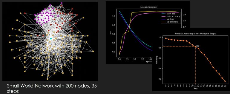 在SIR的过程中,我们可以使用图网络进行学习,用当前时刻的状态去预测下一时刻的状态,其预测效果是非常好的。更有意思的是,我们可以用已知节点的信息去预测未知节点的信息,在网络结构状态已知,部分节点状态未知的情况下,所有的节点信息都可以被比较准确地恢复。