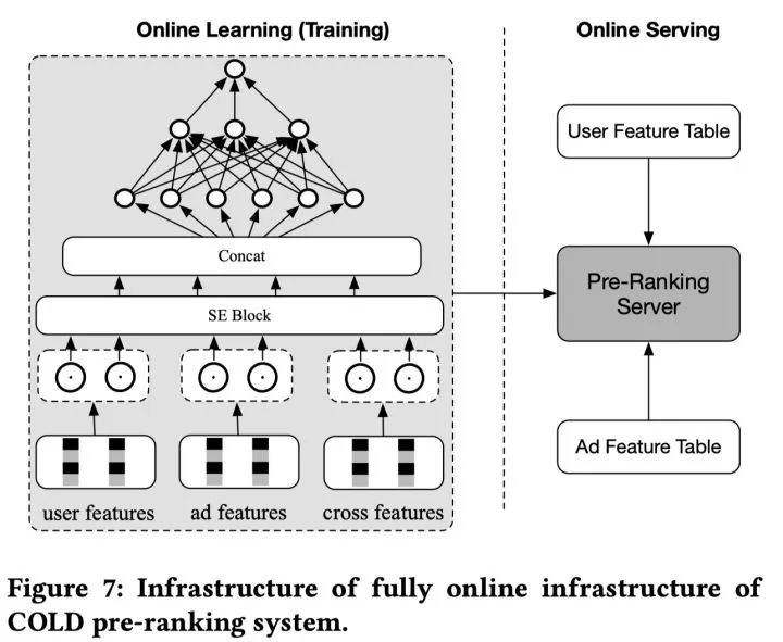 实时架构对于模型迭代和在线 A/B 测试都更有利。向量内积模型由于用户向量和广告向量需要提前计算好,在线 A/B 测试也更为困难。实时架构也使 COLD 模型可以更快的更新,避免了向量内积模型的更新延迟问题。