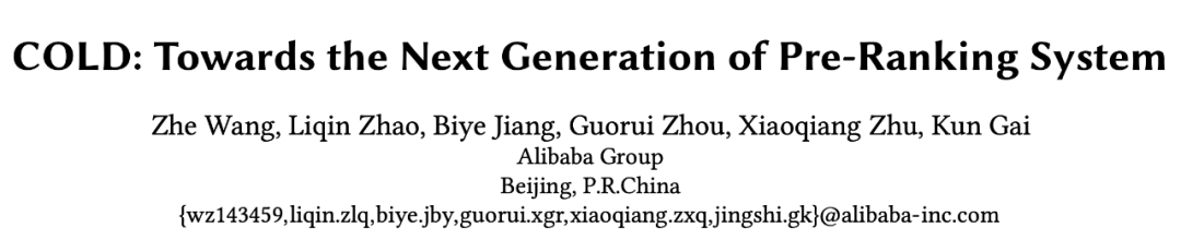 论文标题: COLD: Towards the Next Generation of Pre-Ranking System