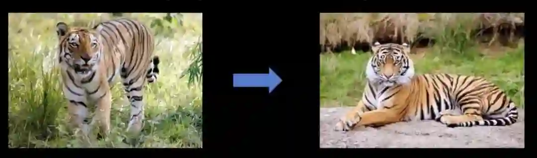 我们看到一只站着的老虎时,自然很容易就能想象出它躺着的样子,这就是图像到图像的转换,即将一个场景的可能表示转换成另一个场景。然而我们能够想像出来是因为我们拥有联想的能力,可以根据其他动物平躺的姿势想像出老虎平躺的样子,然而对于机器来说就不那么简单了。