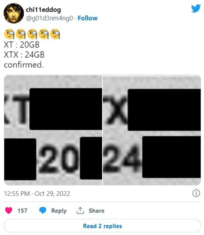 据 videocardz 报道,之前共享过关键信息的硬件爆料者 @chi11eddog 通过分享两个具有部分隐藏名称的产品贴纸来证实 RX 7000 命名泄漏。而近日另一个爆料者证实了 Radeon RX 7000 的命名。