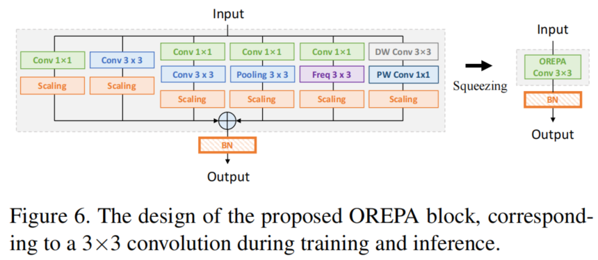 在本节中,首先,分析了关键组件,即重参化模型中的BN层,在此基础上提出了在线重参化(OREPA),旨在大大减少再参数化模型的训练时间预算。OREPA能够将复杂的训练时间块简化为一个卷积层,并保持了较高的精度。