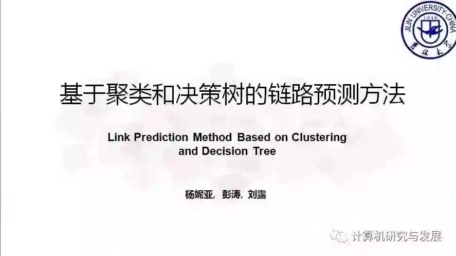 杨妮亚,彭涛,刘露. 基于聚类和决策树的链路预测方法[J]. 计算机研究与发展, 2017, 54(8): 1795-1803.