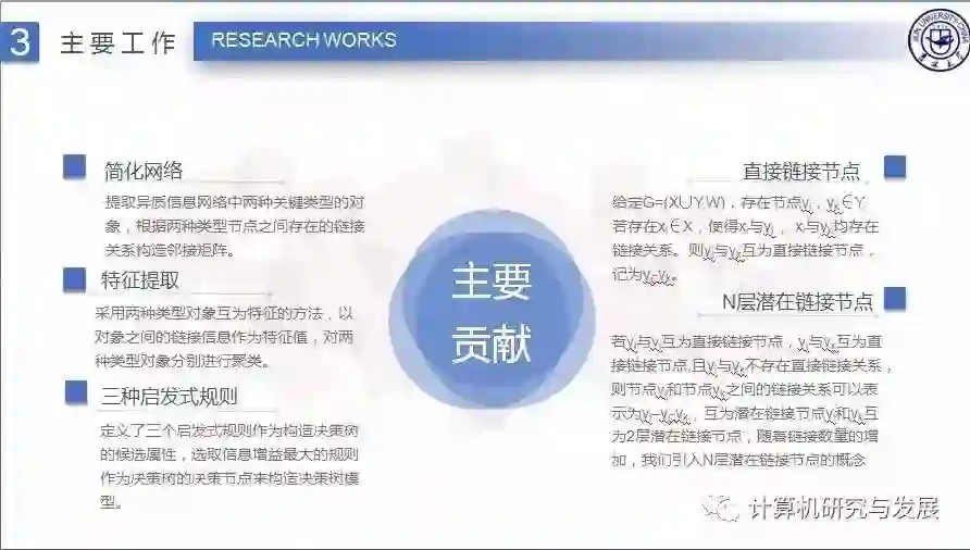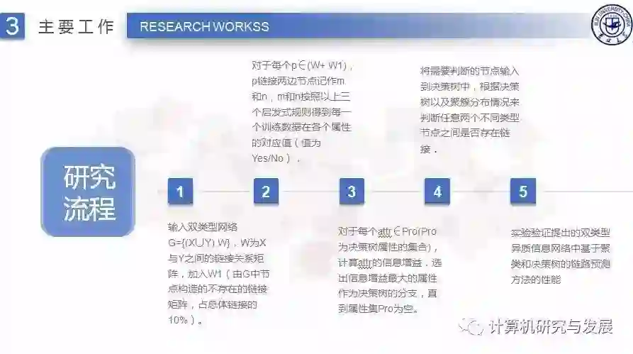 针对双类型异质信息网络,提出了一种基于聚类和决策树的链路预测方法CDTLinks.通过将网络中2种类型对象互为特征的方法得到对象的特征表示,并分别进行聚类.对于双类型异质网络提出了3种启发式规则来构建决策树,根据信息增益来选择树中不同分支.最后,根据聚簇分布结果以及决策树模型来判断任意2个不同类型节点之间是否存在链接.另外,定义了潜在链接节点并引入层数的概念,在降低算法运行时间的同时提高了准确率.在DBLP和AMiner数据集上验证了提出的CDTlinks方法,结果表明:在双类型异质网络中,CDTlinks模型能够有效地进行链路预测.