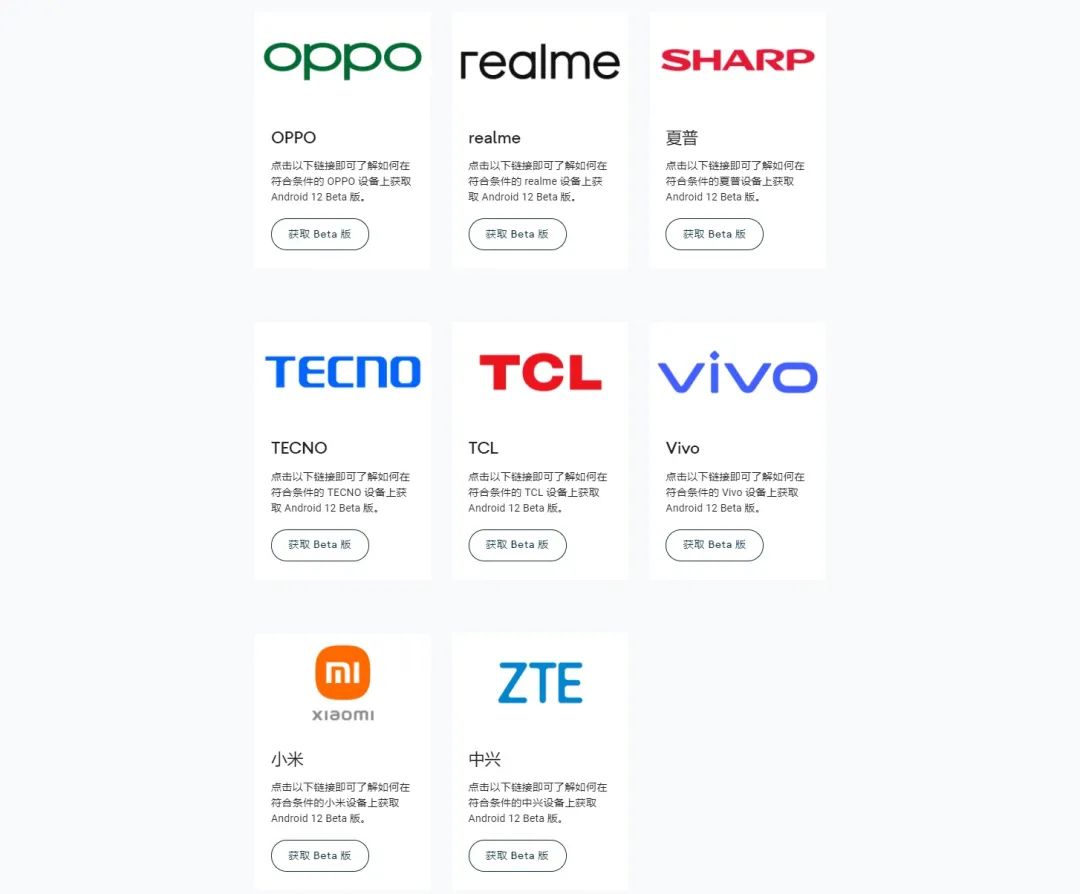非 Pixel 用户也不用着急,加入今年 Android 12 Beta 计划的 OEM 合作伙伴,都已推出了升级计划,包括小米、三星、vivo、OPPO、realme、一加、中兴、夏普、传音(TECNO)、TCL。其中的一些厂商已经推送了 Beta 版本,持有支持型号的小伙伴可以通过官方渠道尝鲜。