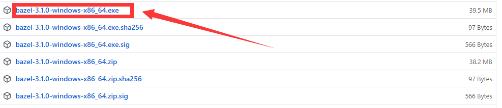前往下载 bazel-3.1.0-windows-x86_64.exe,如下所示: