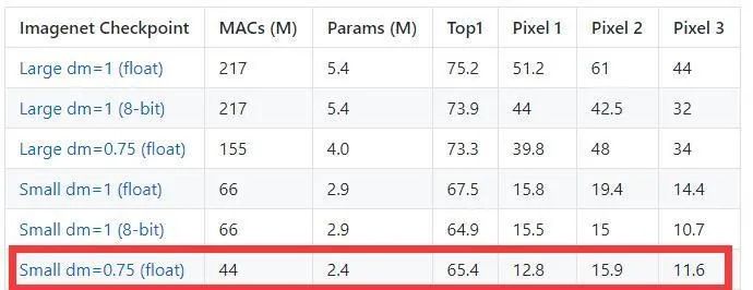 TFLite 模型可以使用 TensorFlow 官方提供的相关模型转换接口得到,这里为了演示,使用 mobilenet v3 提供的 TFLite 模型。前往找到如下 mobilenet v3 模型下载:
