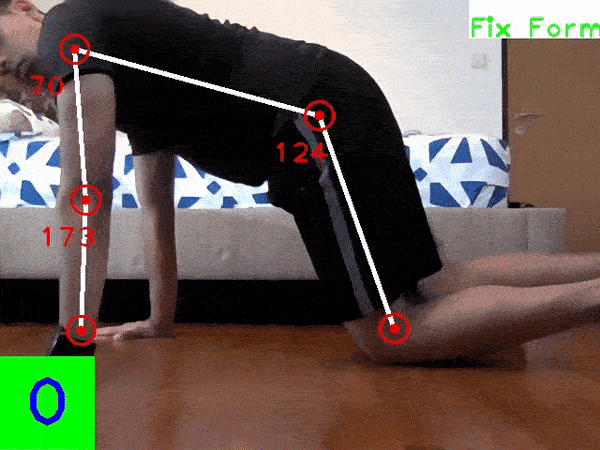 我们完成了!一个能确保动作标准的俯卧撑计数软件。没有完全俯下?不算数! 膝盖放在了地上?不算数!