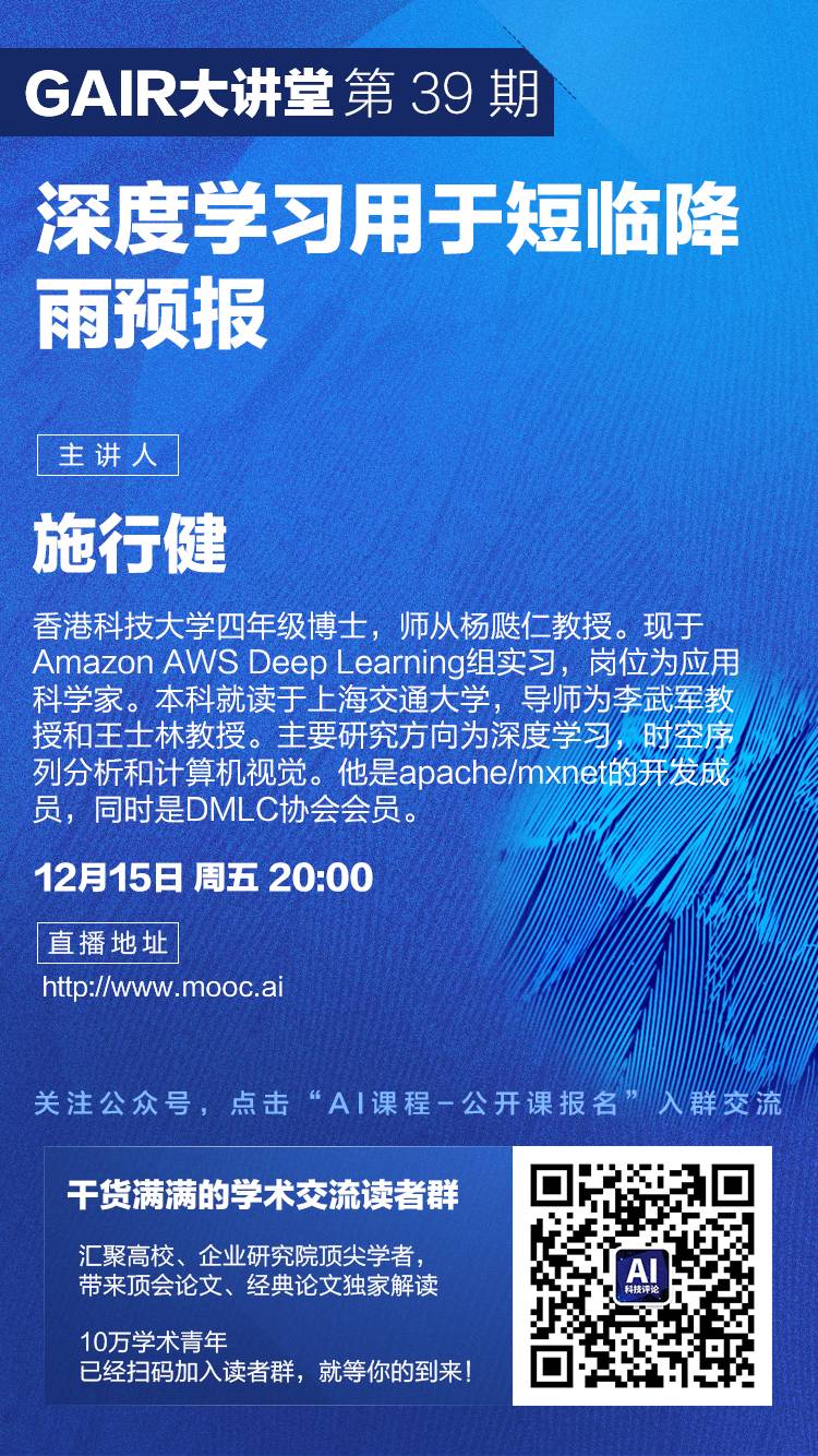 施行健,香港科技大学四年级博士,师从杨瓞仁教授。现于Amazon AWS Deep Learning组实习,岗位为应用科学家。本科就读于上海交通大学,导师为李武军教授和王士林教授。主要研究方向为深度学习,时空序列分析和计算机视觉。他是apache/mxnet的开发成员,同时是DMLC协会会员。