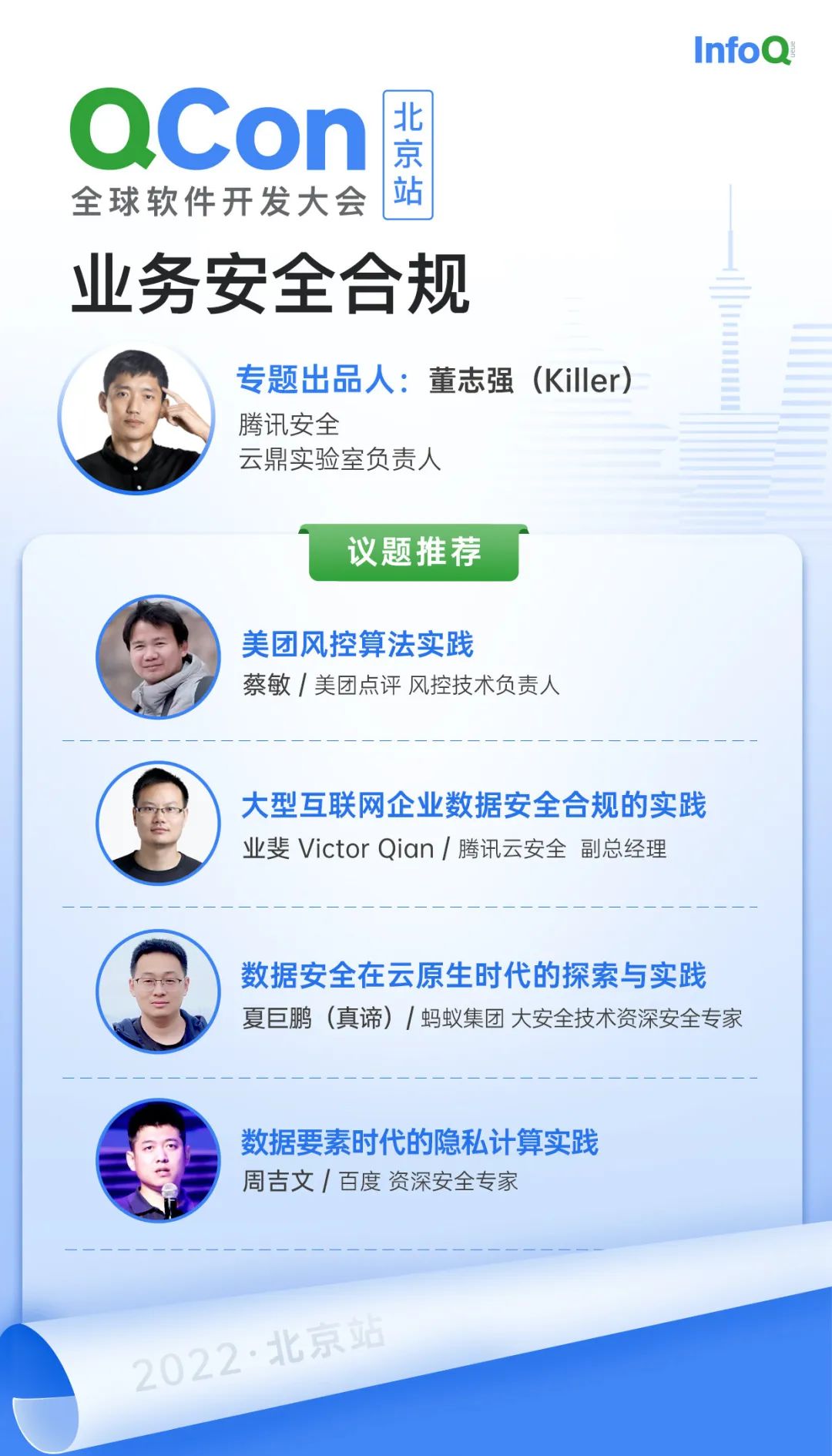 9 月中旬,在即将举办的 QCon 全球软件开发大会(北京站)上,我们策划了【业务安全合规】、【云原生时代的可观测最佳实践】、【前端前沿技术】、【数据湖存储底座】等专题,涵盖风控算法实践、数据安全合规、隐私计算实践、云原生可观测、H5 安全加固方案、高安全高可靠高性价比数据湖等不同方向的精彩议题分享。欢迎你来 QCon 北京站现场交流互动。