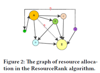 本文提出了ResourceRank算法,用于刻画两个实体之间的关联强度。该算法的思路是,如果实体对(h, t)之间的关联性很强,那么会有非常多的资源从头部实体h通过所有关联路径传递到知识图谱中的尾部实体t。例如在下图中,从节点(实体)A到节点E的边(关系)非常密集,也就是说(A, E)这两个实体之间存在较高的关联强度,因此可以很容易地猜测到(A, E)之间存在关系;但是从节点G到节点F之间没有直接关联的边,类似地可以认为(G, F)之间不存在关系。