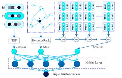 在构建知识图谱的过程中,不可避免地会产生噪声和冲突。基于知识图谱的任务或应用一般默认假定知识图谱中的知识是完全正确的,这样会不可避免地会带来潜在的偏差。而本文则建立了一个知识图谱三元组置信度的度量模型(Knowledge GraphTriple trustworthiness measurement model, KGTtm),量化其语义正确性和所表达事实的真实程度。本文的主要贡献在于: