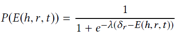 其中,δr是与关系r相关的阈值。当E(h, r, t) =δr的时候,概率值P为0.5。λ是用于平滑处理的超参数,可以随模型训练进行动态调整。