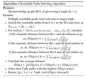 可达路径的可靠性需要考虑到路径与目标三元组的语义相关性的因素,因此本文针对这部分提出了一种基于语义距离的路径选择算法: