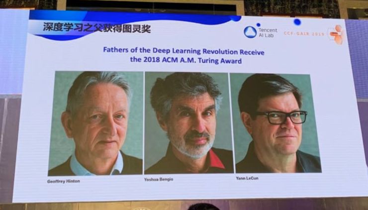 由于 Geoffrey Hinton, Yoshua Bengio, Yann LeCun 对深度学习的贡献,他们共同获得了 2018 年的图灵奖。这个奖他们当之无愧。要知道 Geoffrey Hinton 1986 年就提出了 backpropagation,坐了 25 年的冷板凳。