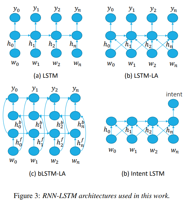 作者提出了一个RNN-LSTM体系结构,用于空位填充、意图确定和领域分类的联合建模。