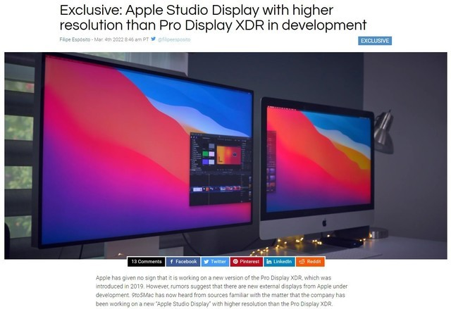 彭博社 Mark Gurman 最近报道称,苹果计划在 2022 年推出多款新 Mac,以及一款新的外部显示器,其价格是针对普通用户的 Pro Display XDR 的一半。过去,苹果的"Cinema Display"系列有多种尺寸可供选择。因此,如果该公司再次为其客户提供两种或更多种显示选项,那也就不足为奇了。