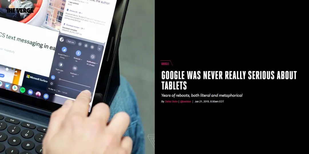 外媒 The Verge 曾发表了一篇题为《谷歌从未认真对待平板电脑》的文章,直指谷歌对安卓平板缺少连贯有序的计划,安卓的大屏体验从来都没好过。自从 Android 4.X 系统之后,安卓平板系统几乎没有得到重大更新,谷歌对此难辞其咎。