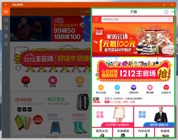 如果追本溯源起来,平行视窗的设计概念其实并非华为首创。2015 年的淘宝 Windows 10 UWP 版已经应用了类似设计,该版本由微软官方亲自操刀,与阿里巴巴共同研发而成,采用一分为二的界面设计,让应用在横屏下使用不再那么别扭。