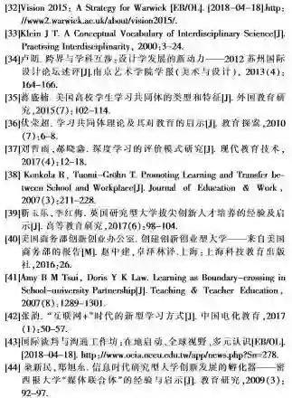 实施跨组织机构获取跨界知识,变革高校创新教育的国际范例主要有#“知识互换”CKI(Centers for Knowledge Interchange)是由德国慕尼黑工业大学、亚琛工业大学和丹麦技术大学分别与西门子公司设立的基于知识互换理念的人才培养项目,旨在促进跨界知识流转,建立跨界知识联盟,持久地促进创新实践与研发生产。此外,英国的林肯大学、纽卡斯尔大学、剑桥大学和曼彻斯特大学与西门子公司开展合作,具体做法是将项目研究与产品研发融入学位课程中,并提供与企业工程要求一致的现代化学习环境,实现创新教育与创新实践的无缝衔接[39]。