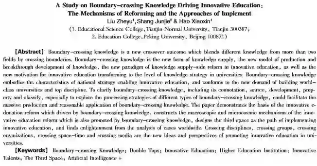 关键词:跨界知识;双一流;创新教育;高等学校;创新人才;第三空间;人工智能+