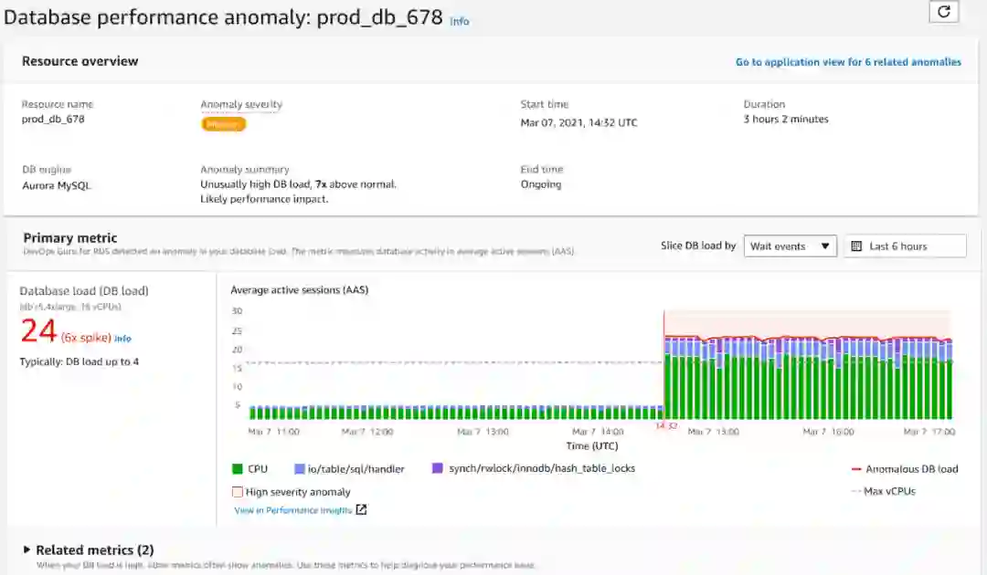 比如 DevOps Guru for RDS 可以用来帮助开发者检测、诊断和解决 Amazon Aurora 中的性能和操作问题。