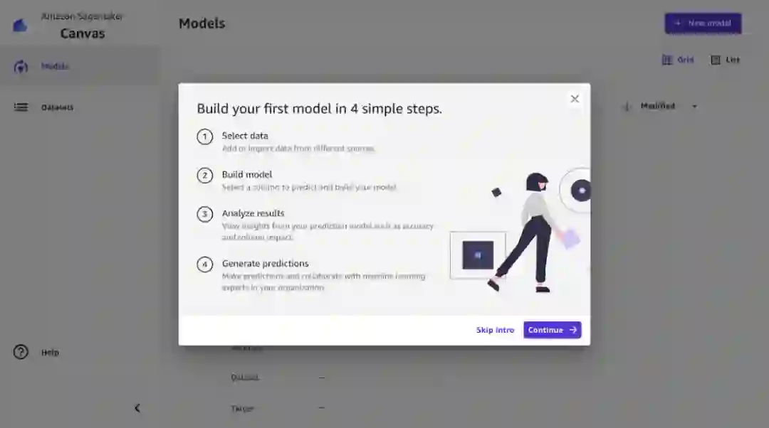 Amazon SageMaker Canvas 就是将机器学习模型的诸多步骤可视化为可交互的 UI,旨在解决他们的业务问题,号称:不写一行代码,快速生成机器学习预测模型。
