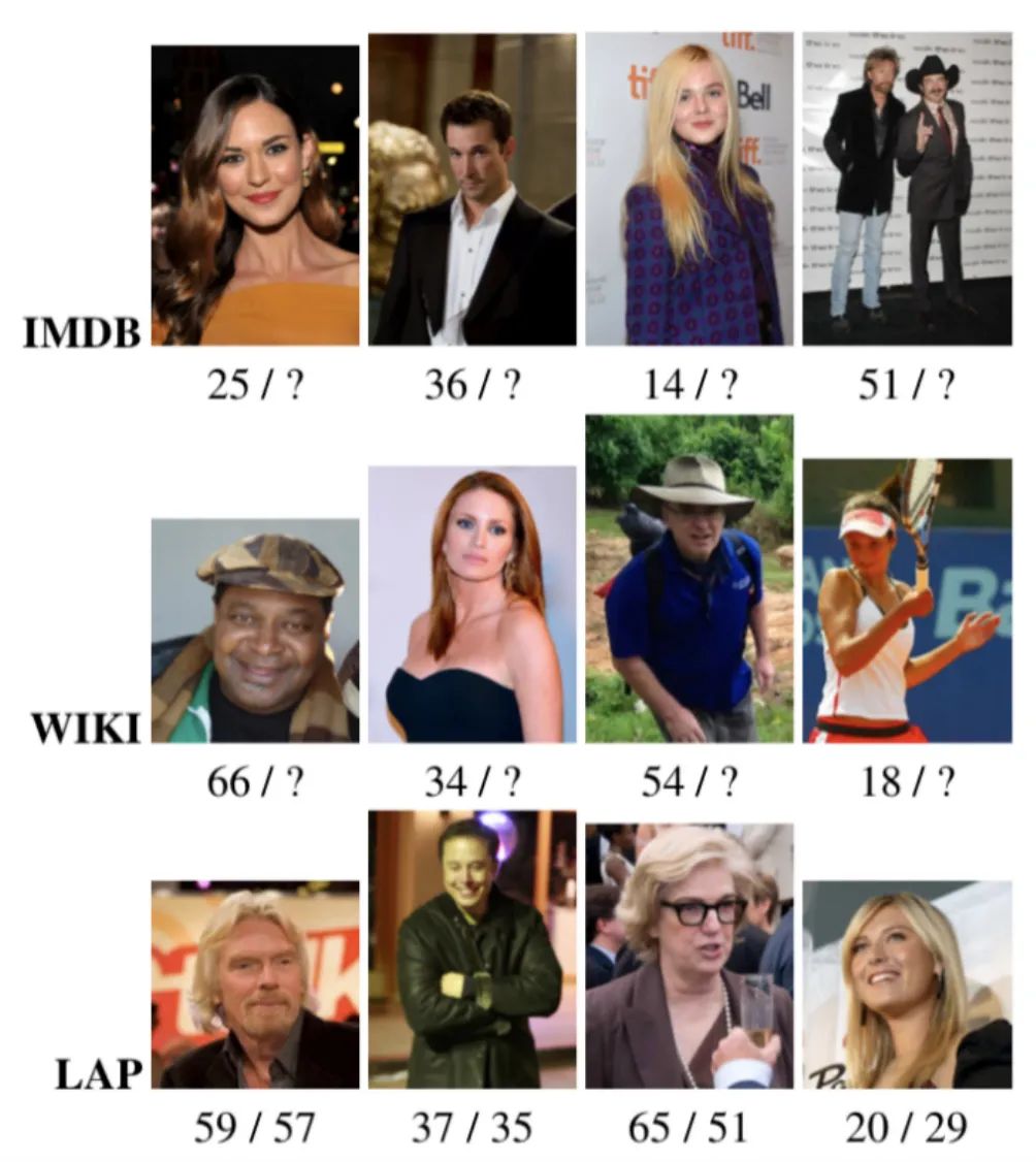 IMDB-WIKI 500k+ 是一个包含名人人脸图像、年龄、性别的数据集,图像和年龄、性别信息从 IMDB 和 WiKi 网站抓取,总计 524230 张名人人脸图像及对应的年龄和性别。其中,获取自 IMDB 的 460723 张,获取自 WiKi 的 62328 张。
