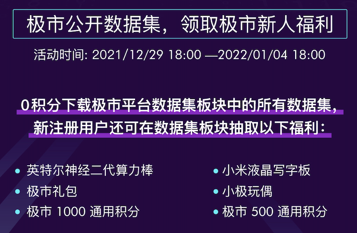 本抽奖活动限12月29日18点后在极市平台注册查看数据集的开发者参与