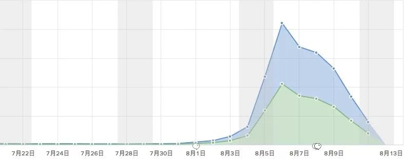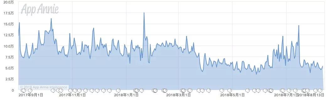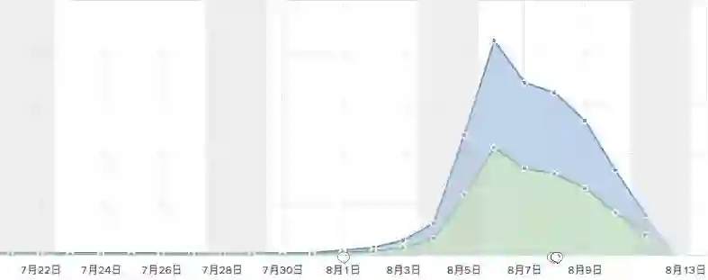 2、下载量:8 月 1 日开始,皮皮虾的 iOS 下载量激增,在 8 月 6 日达到日下载量 21 万的高峰。