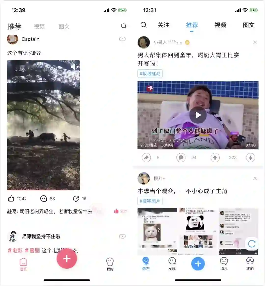 1)内容话题性:都依靠搞笑的视频和图文内容吸引用户。
