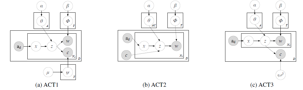 ACT2 模型:每个“作者-会议”对都与主题上的多项式分布相关联,然后从采样的主题中生成每个单词。