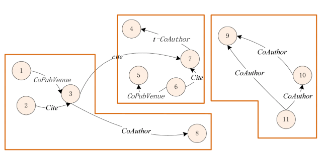 3)学术网络中研究者、论文、会议等异质实体的统一建模问题。
