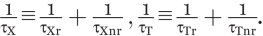 nX, nT分别为电中性激子跟带负电带电激子的数量密度; τX, τT分别为电中性激子跟带负电带电激子的生命期;Cbx为双激子消灭系数。激子跟带电激子的生命期还包括发光(τXr, τTr)与非辐射(τXnr, τTnr)两个部分: