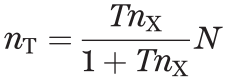 ,T为带电激子生成系数。结合两式,带电激子数量密度(nT)可改写成与电中性激子数量密度(nX)的关系式: