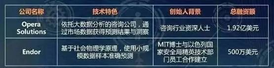 新技术、机器学习与咨询预测行业的结合,相比于仅使用大数据分析技术能够获得更好的效果,也成为了行业内的一个小热点。例如基于社会物理学原理的Endor能够依托少量数据生成统一的人类行为数据集,并比传统海量数据分析方式更早的做出模式识别与判断。在甄别facebook上受ISIS控制的账号的实验中,根据已知少量ISIS账号特性,Endor高效分辨出了新的ISIS疑似账号并且准确度令人满意。