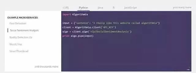 Algorithmia的平台上提供包括机器学习、语义分析、文本分析等通用性算法,一旦用户找到想用的算法,只需添加几行简单的算法查询代码到应用中,Algorithmia的服务器就会与应用连接,避免了开发者的重复劳动。