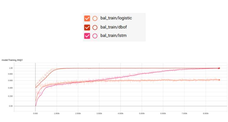 这里是具有细节描述的 YouTube-8M 模型完整列表(https://github.com/google/youtube-8m#overview-of-models)。因为我们的训练数据是帧格式的,所以必须使用帧级别的模型。Google AudioSet 数据集为我们提供的数据被分成了三部分:均衡的训练集、不均衡的训练集以及评估集。