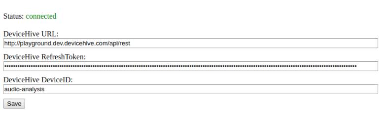 最后但是也是比较重要的一个:集成在 IoT 基础设施中。如果你运行了我们前面提到的 web 接口,你可以在索引页面上看到 DeviceHive 客户状态和配置。只要客户端已经连接成功了,预测结果会以通知的形式发送到特定的设备上。
