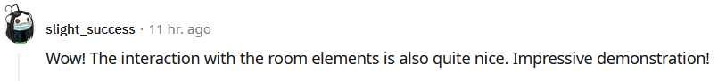 「天!和房间里元素的互动也太真实了!好棒!太令人印象深刻了。」