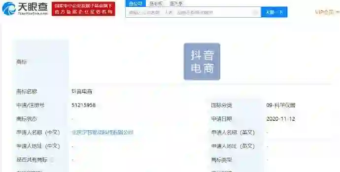 天眼查 App 显示,近日,北京字节跳动科技有限公司新增一条名为“抖音电商”的商标信息。商标申请时间为 2020 年 11 月 12 日,国际分类为广告销售,商标状态为“商标申请中”。此前抖音短视频已经更名为抖音,去掉短视频三个字,暗示着抖音已经不仅仅满足于短视频业务,据了解,实际上,抖音已经拓展到直播、电商、社交、金融、游戏等业务。此次抖音放弃了多年来使用的短视频命名模式,或成为抖音进一步扩张的开始。