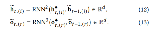 给定一系列事件和事件类型的融合embedding(下图前两位)以及单词embedding(下图最后一位),我们采用递归神经网络对时间信息进行建模。