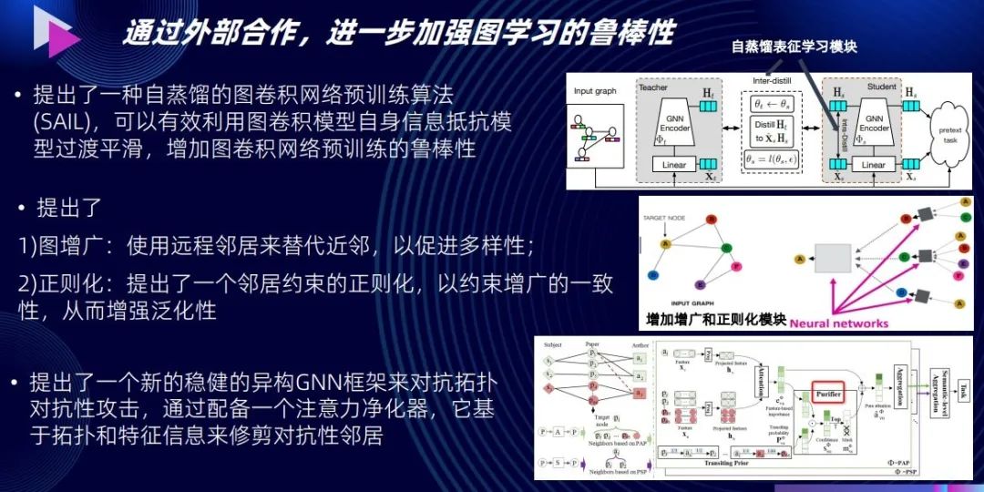 同时我们也注意到,图学习这种算法本身存在鲁棒性的问题。于是,我们跟外部高校合作,提高了模型的鲁棒性,也解决了模型过渡平滑、难泛化等潜在问题。我们还提出了一个新的稳健的异质 GNN 框架来对抗拓扑对抗性攻击。它配备一个注意力净化器,基于拓扑和特征信息来修剪对抗性邻居,从而进一步增强 AI 的可靠性 [4] [5] [6] 。