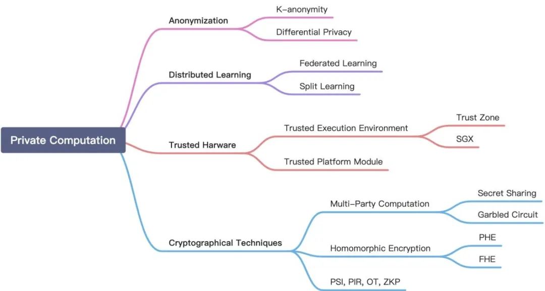 隐私保护已经在业界发展了很多年,也积累了很多术语,比如匿名化、差分隐私、TEE、多方安全计算等。每一种技术都有自己适用的场景。但我们发现,现在的隐私保护技术很难在模型强度、精度、效率三方面取得比较好的平衡,这三方面目前是一个相互制约的局面。