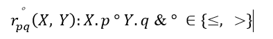 基于定义的数值比较和求反操作,通过在之上施加聚合函数 F 去达到多个属性操作聚合作用的效果,例如下面一条逻辑表达式:
