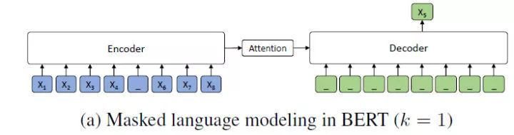 MASS 原论文中谈及 Bert ,认为 Bert 一句话中只 mask 掉一个token, 因此它有一个比较: