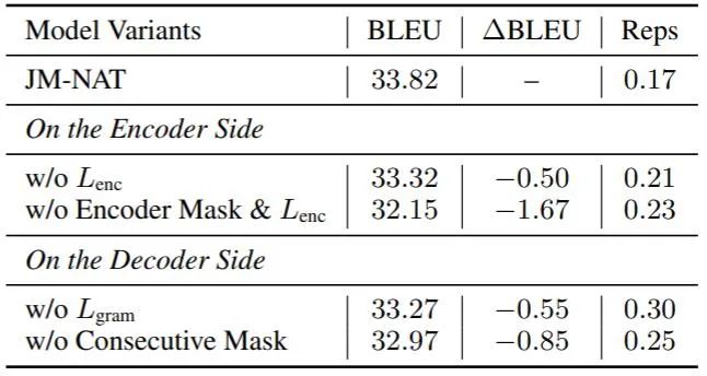 本文提出在序列到序列的非自回归模型上进行掩码训练,在编码端和解码端联合训练,进而更加全面地增强非自回归模型的效果。更加重要的是,这种方法为简洁、有效的非自回归模型预训练方法提供了思路。