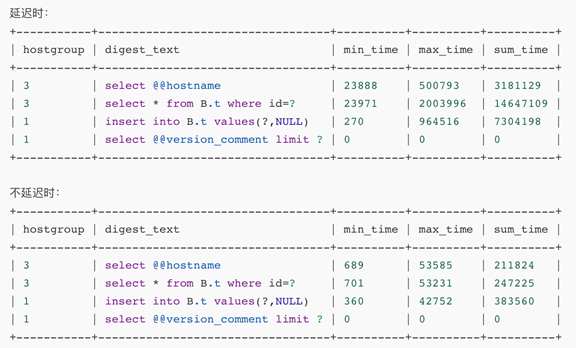 参数 1: 网络延迟 0.5s,但是还没达到被 shunned(ProxySQL) 的时限 (1s)