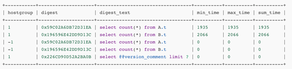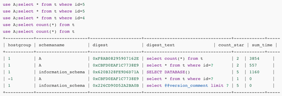proxysql 的语句重写是规则转发的一重要特性。proxysql 对 query 进行指纹化处理后,统计查询耗时。