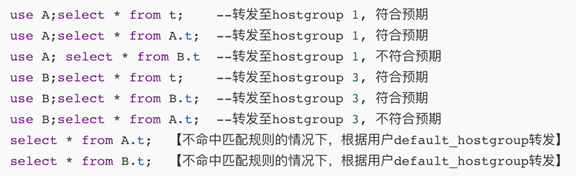 Use database,不论后面跟什么,都以规则中设置的 destination_hostgroup 为准